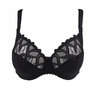 De bh heeft een meerdelige cup en versierde schouderbandjes.